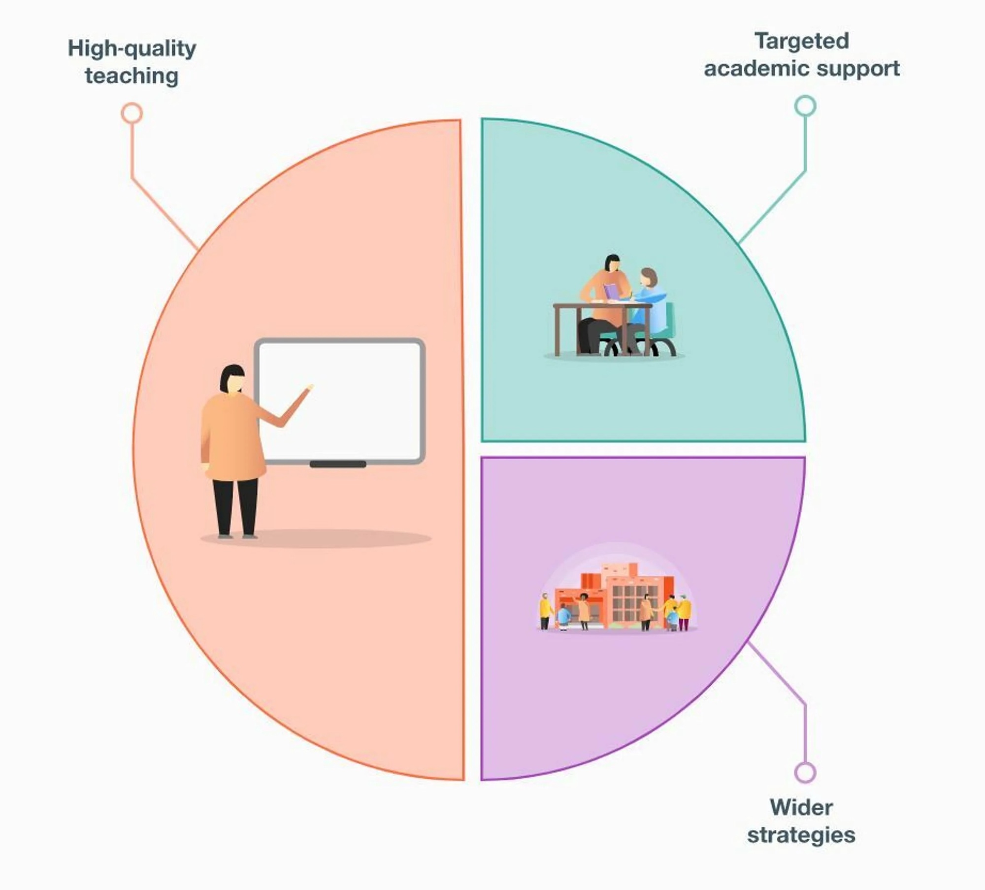 We know, and academic research shows us, that high quality teaching is the best chance to close attainment gaps between pupils eligible for the Pupil Premium Grant and non-disadvantaged pupils. Spending in this area focuses on CPD for staff, focusing on developing early language, and feedback and improvement opportunities.